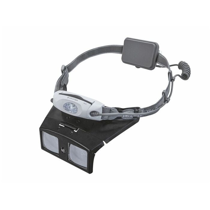 Pannbandslupp Tech-Line BINO LED med metallinfattade utbyteslinser av silikatglas samt kraftfull svängbar LED belysning. Färgtemperatur 6000 K. Justermöjlighet med elastiskt gummiband.