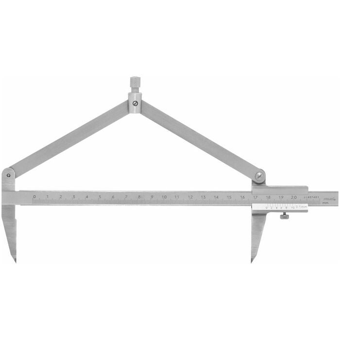 Kraftiga, parallella ritsskänklar med finslipade mätytor. Löparen låsbar med klämskruv.