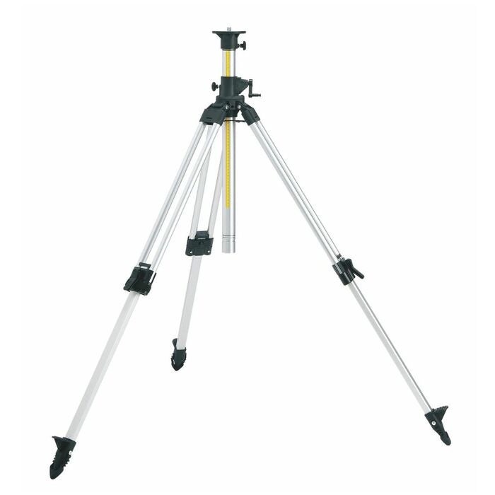 Robust stativ med vevbar pelare av lättmetall, teleskopben med snabbinställning. Med avtagbar nivelleringssats.