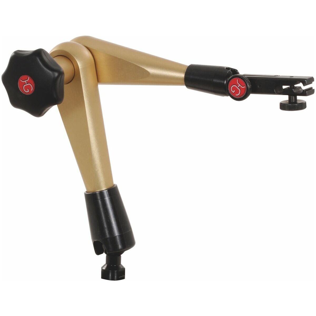 Hydrauliskt mätstativ med centrallåsning. Du har ena handen fri för inställning av mäturet. Alla leder kläms fast stramt med det centrala vredet. Den patenterade mekanismen ger högt tryck så att det bara behövs en liten kraft för att vrida ratten. Oljehydrauliken är säkrad mot oljeförlust genom dubbla packningar. Klämkraften kan regleras steglöst.