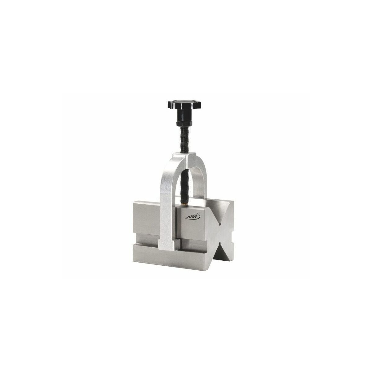 Precisionsutförande, jämnhets- och parallellitetstolerans 0,004 mm. Prisma av härdat stål, spänningsfria och parvis finslipade. Olika djupa V-blockskåror, 2 anliggningsytor. Kraftig klämbygel med vred för fastspänning av arbetsstycket.