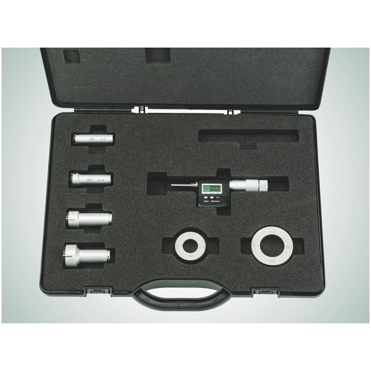 Digitala innermikrometrar nr 428930 med tillhörande inställningsringar.
