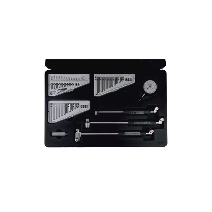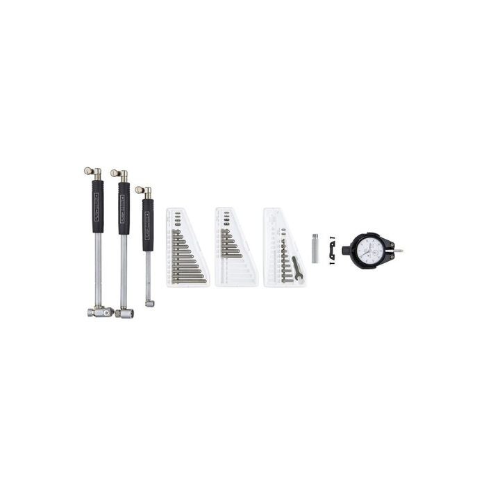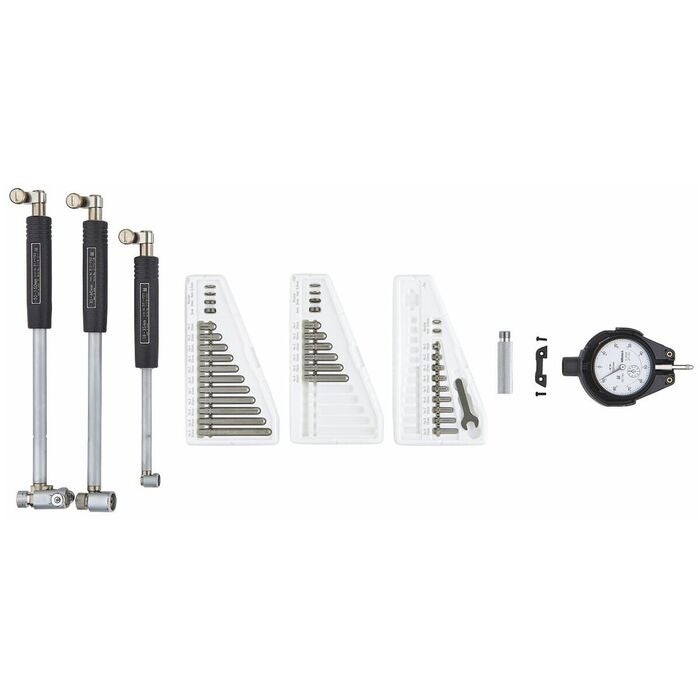 3 invändiga mätinstrument nr 435203 med mätspetsar, förlängare och mätskivor.