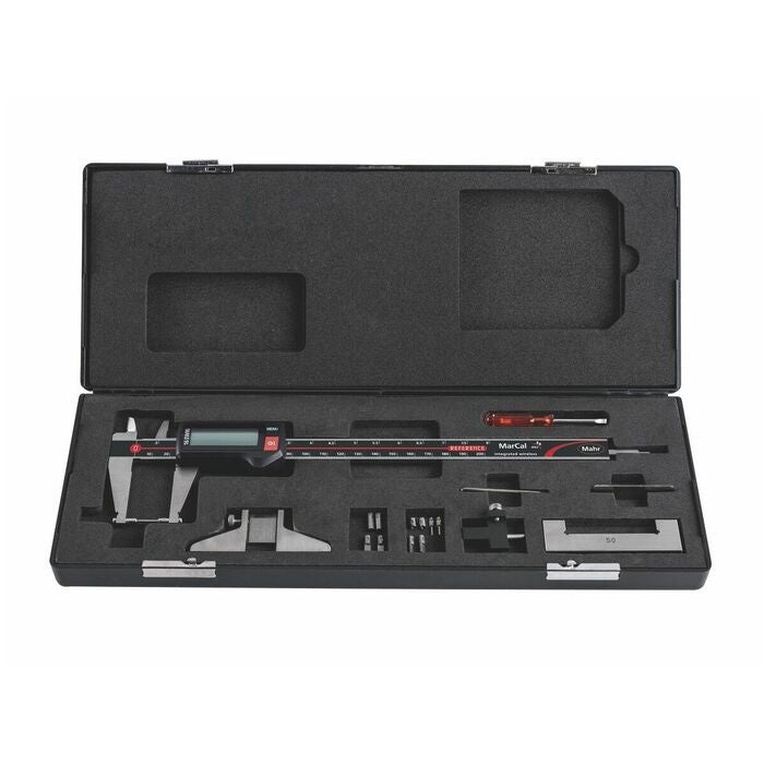 Digitalt universalskjutmått som kan användas för olikainvändiga och utvändiga mått (instick, spår, gängor etc.). REFERENCE mätsystem sparar och behåller det inställda nolläget, även efter att ha startats om. Lock-funktionen förhindrar mätfel genom oavsiktligt tryck på manöverknappar.