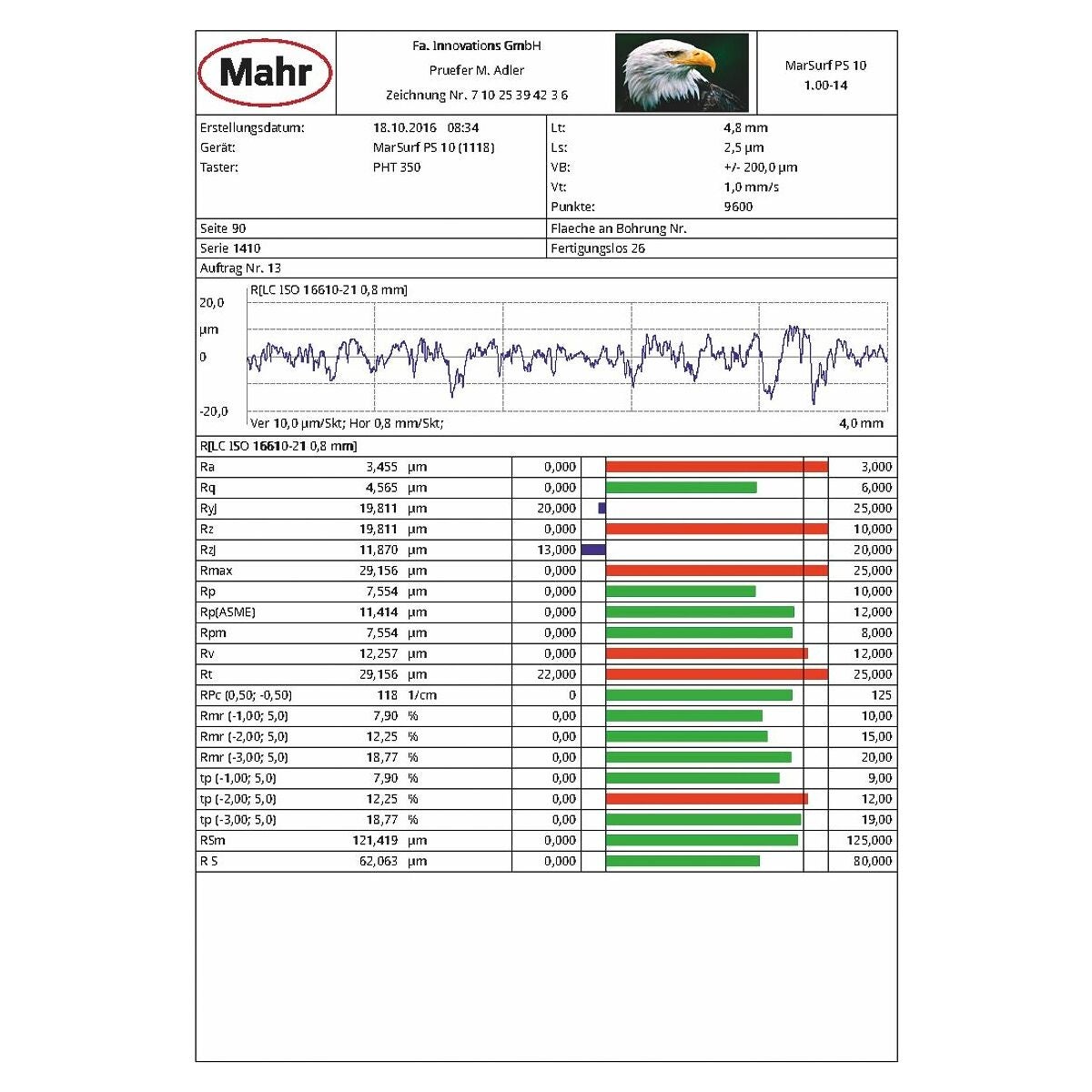 - Mätning enligt standarderna DIN EN ISO 4287/4288 DIN EN ISO 21920-2:2021.