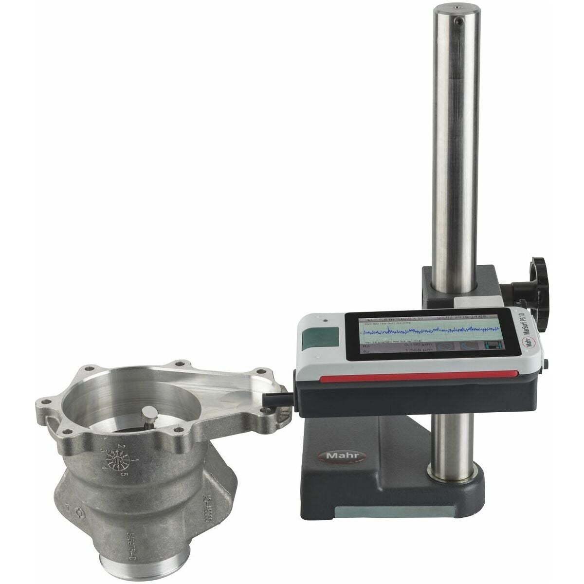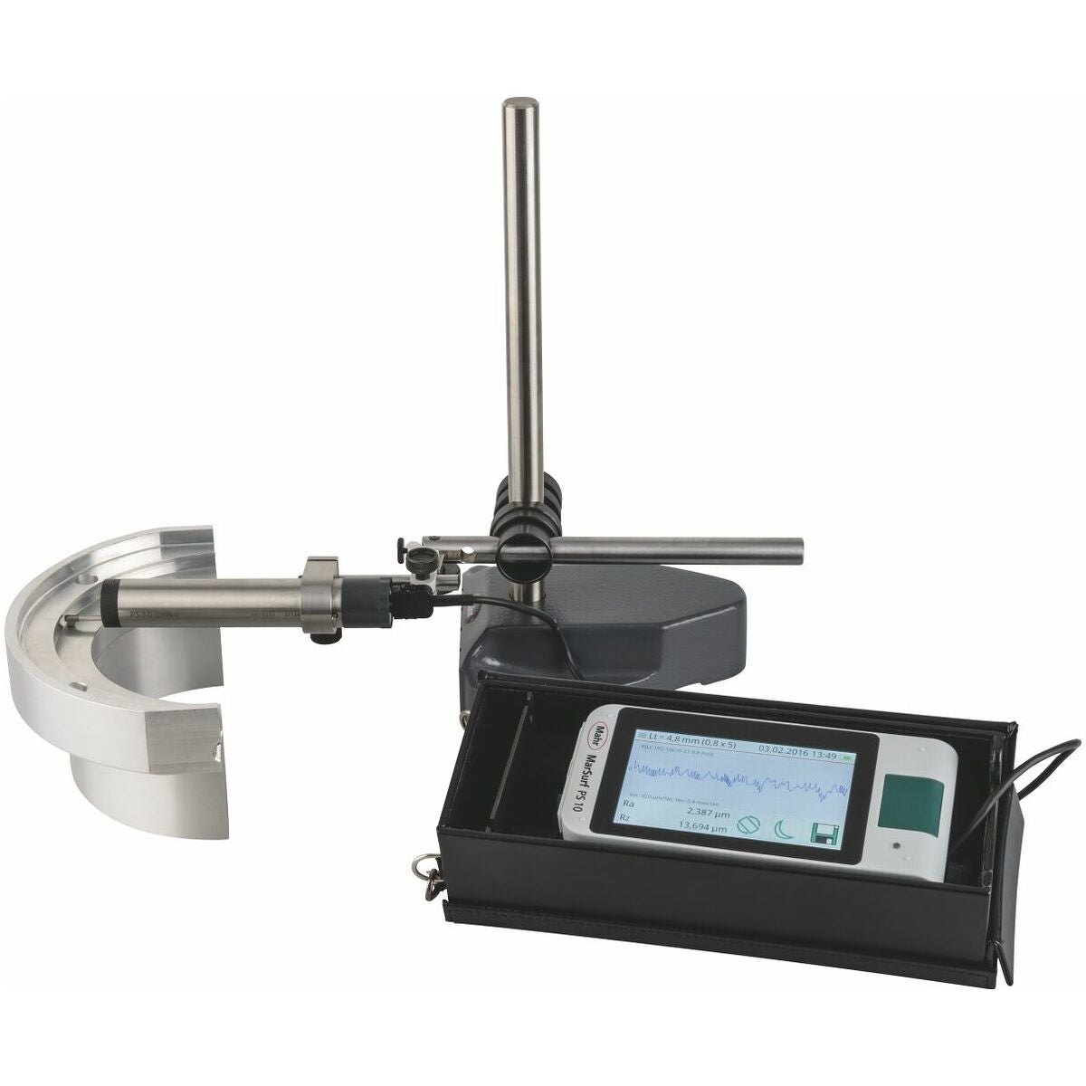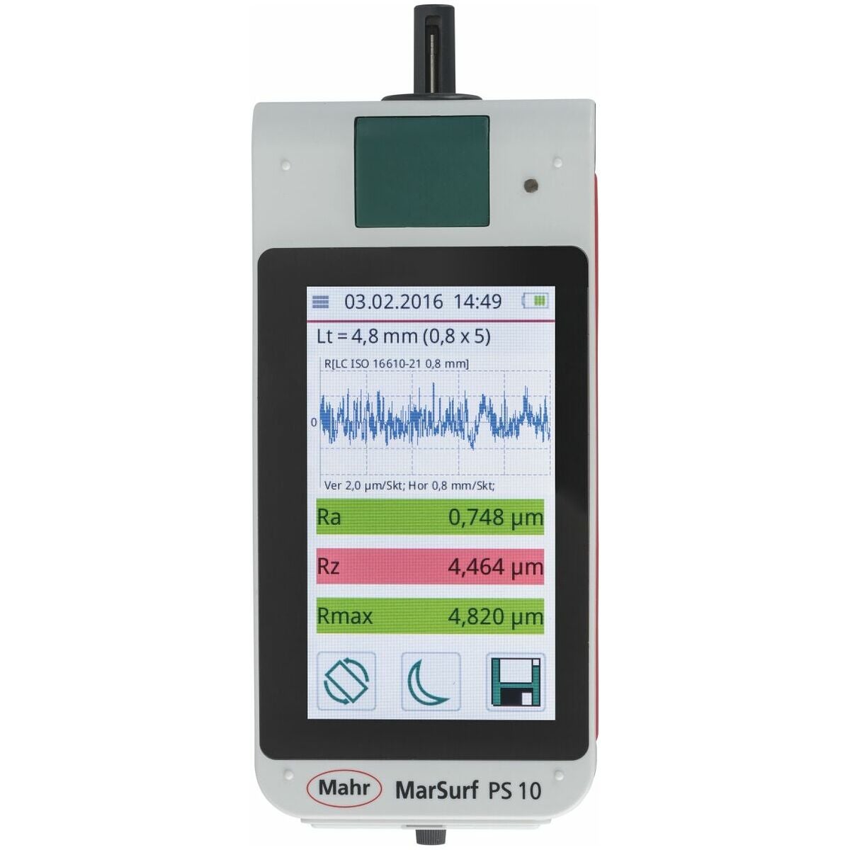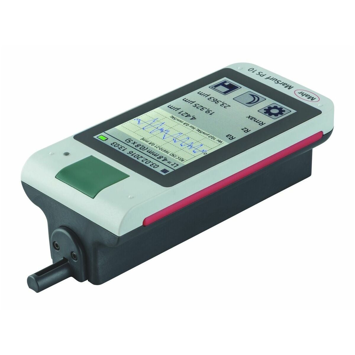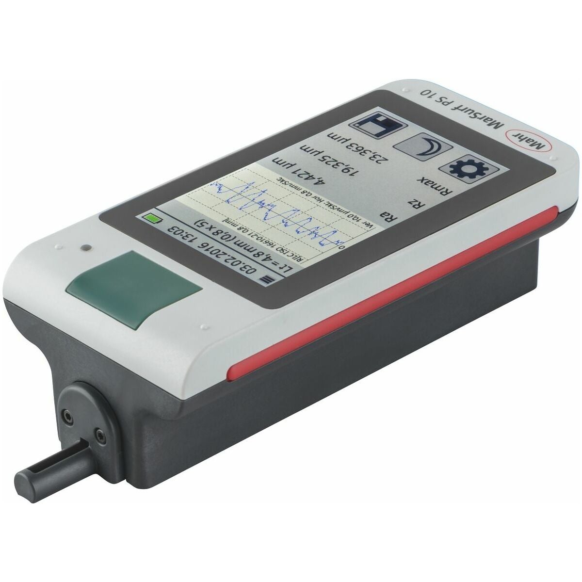 Med inbyggd kalibreringsnormal (kan tas ut). Stor belyst 4,3 tum-TFT-pekskärm. Vridbar display. Inbyggd matningsenhet som kan användas separat. Fäste för höjdinställning för mätningar på koner etc., datalagring som TXT, X3P, CSV och PDF-fil. Gaussfilter enligt ISO 16610 − 21 (ersätter DIN EN ISO 11562), specialfilter enligt DIN EN ISO 13565 − 1, IS-filter enligt DIN EN ISO 3274 (frånkopplingsbart).