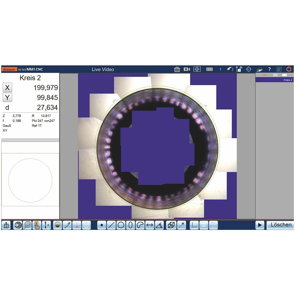 CNC-styrt videomätmikroskop med snabb bildbehandling, högupplösande färgkamera och en lättmanövrerad verkstadsanpassad multitouch-bildskärm på PC-bas.