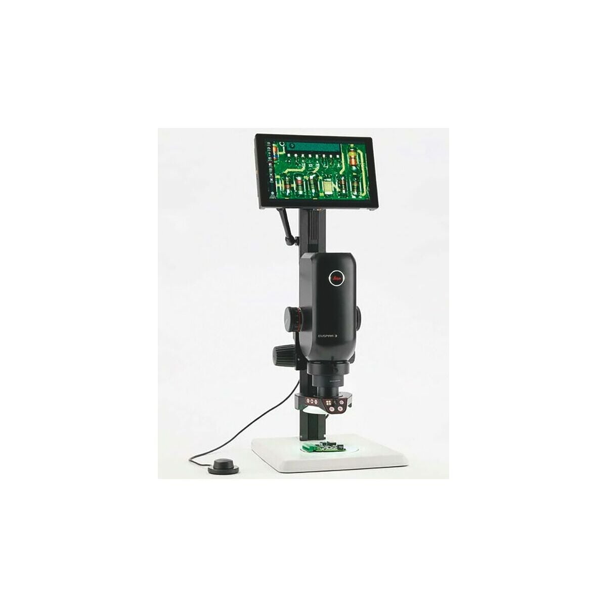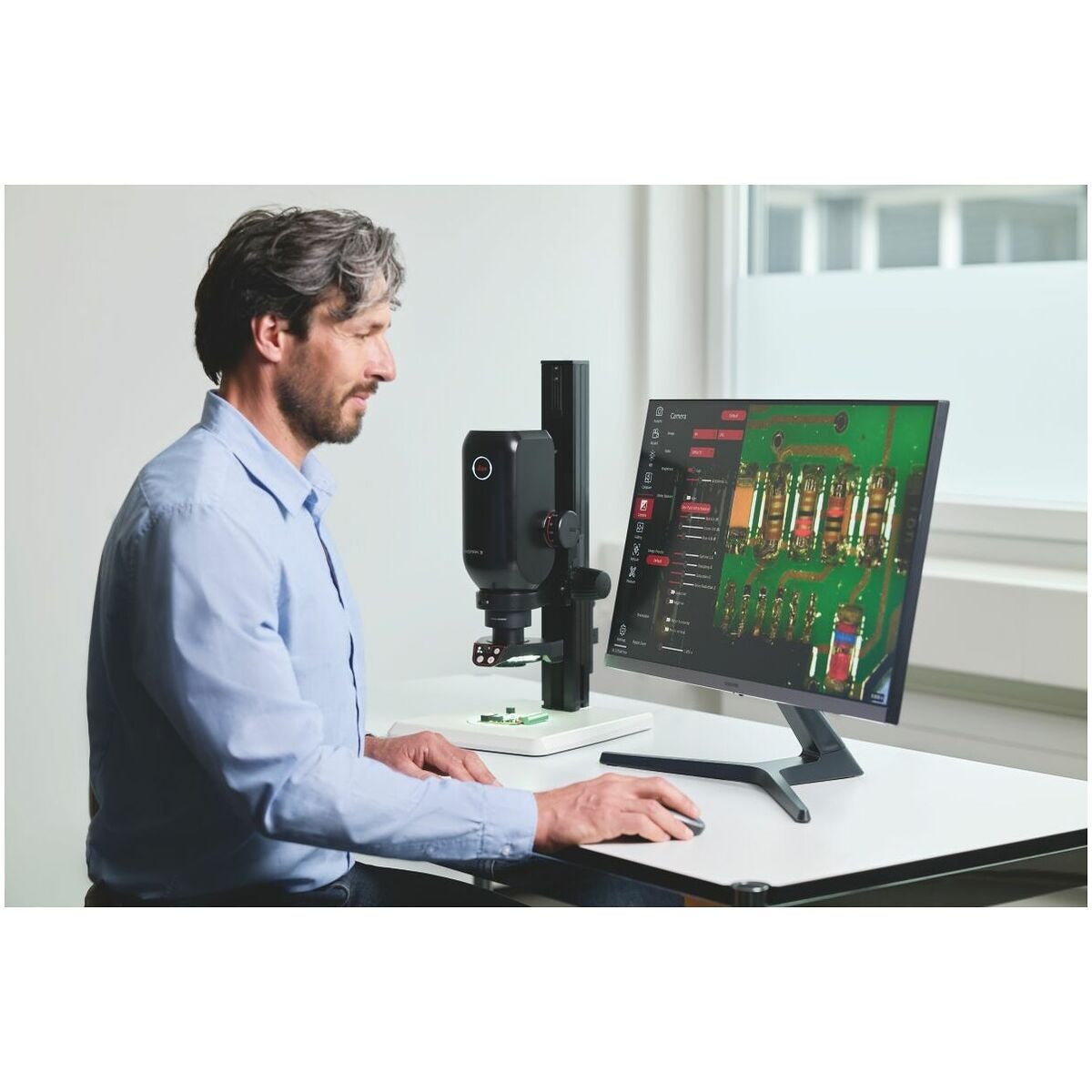 Digitalt mikroskop, fristående kit, nätsladd, nätdel, objektiv 0,8x, vridbarmstativ, LED3000 ringlampa, diffusor, dammskyddskåpa.
