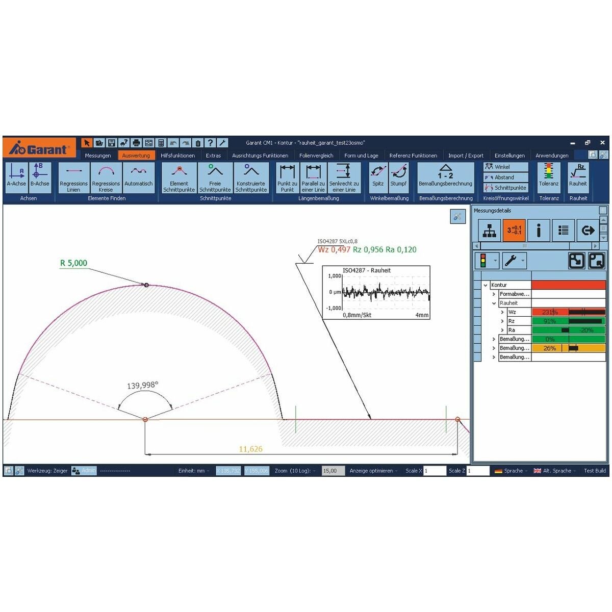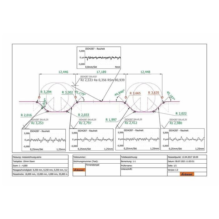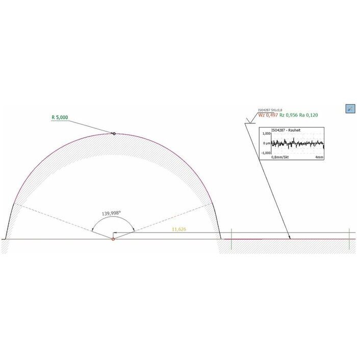 - Automatiskt val av filtrets gränsvåglängd (cut-off) och mätsträcka enligt ISO 4288 och ISO 3274.