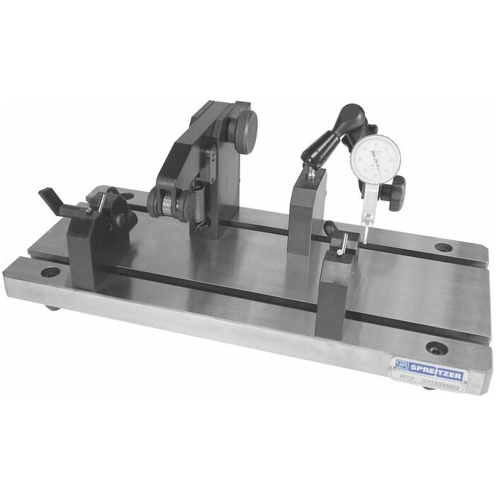 Härdad och slipad bottenplatta med 2 fastspänningsspår. Steglös förskjutning av prismabockarna (med hårdmetallytor), rullanordningen och det ledade stativet. Universalanslag som kan monteras i plan och i rät vinkel mot prismorna. Tack vare V-vinkel på 108° kan även polygonformade detaljer kontrolleras. Ledat stativ för fasthållning av mätur eller vippindikator.