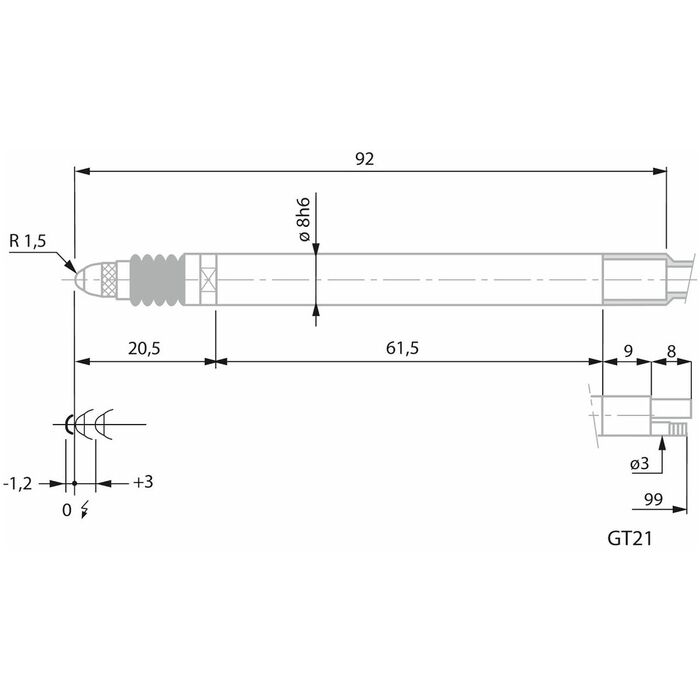 | Linjäritetsavvikelse (l=mätlängd i mm) | 0,2 + 3 × L³ µm |