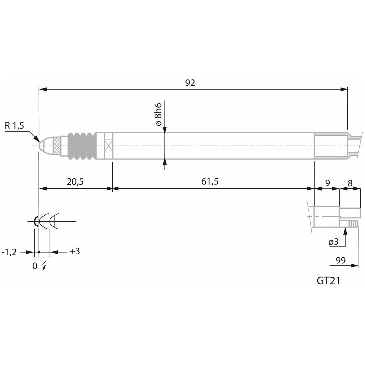| Mätspetsväg | 4.3 mm |