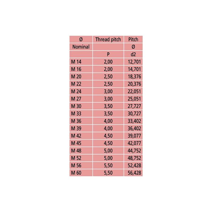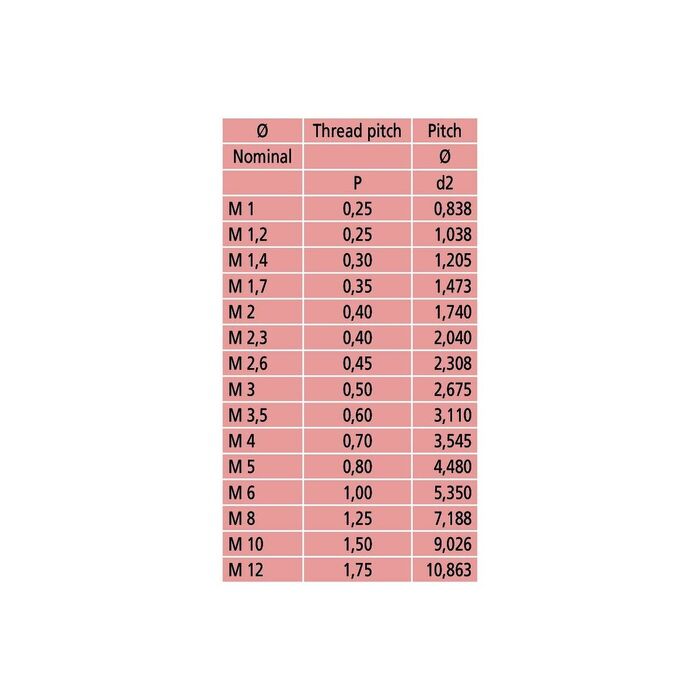 | Stigning | 2 - 3 mm |