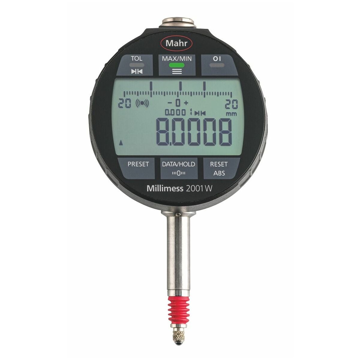 Digitalt finmätur med högsta noggrannhet av ett induktivt mätsystem vid en upplösning på 0,1 µm. Stor kontrastrik display och pekmanöverorgan med inställbar känslighet. Strömförsörjning via integrerade batterier resp. stationär drift med strömförsörjning vida USB-datakabel (batterigångtid upp till 1 månad). Digital display med TOL-funktion. Visning av mätvärdesklassificering (godkänd/ kassation/ varningsgräns eller efterarbete) genom mycket tydliga LED-ljussignaler (rött / grönt / gult).
