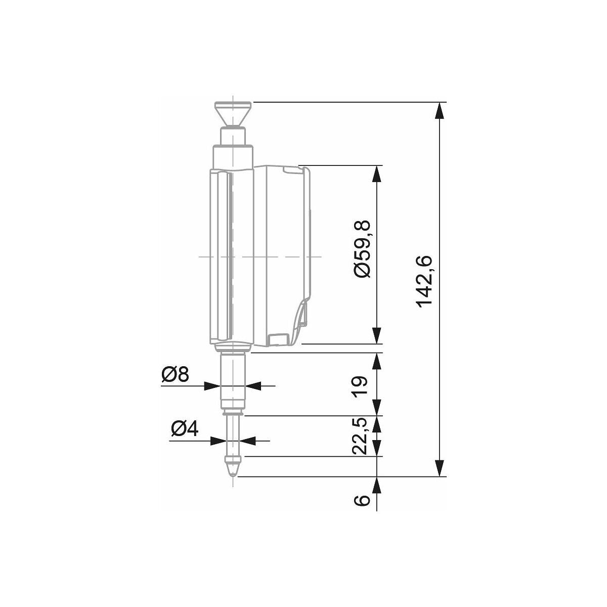 Digitalt mätur med skal- och sifferindikering (sifferhöjd 10 mm) samt mekaniska toleransmarkeringar. Displayen och knappsatsen kan vridas 270°.