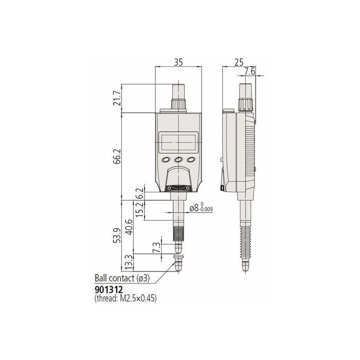 Praktisk, mångsidig och robust digital mätklocka med inbyggd toleransvisning (med eller utan mätvärde). Det smala utförandet gör det särskilt lämpligt för montering i apparater med trånga utrymmesförhållanden. Displayen kan vridas 180° för att medge avläsning från båda sidorna.
