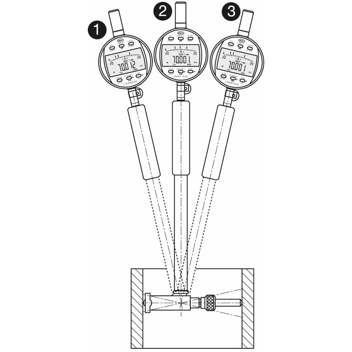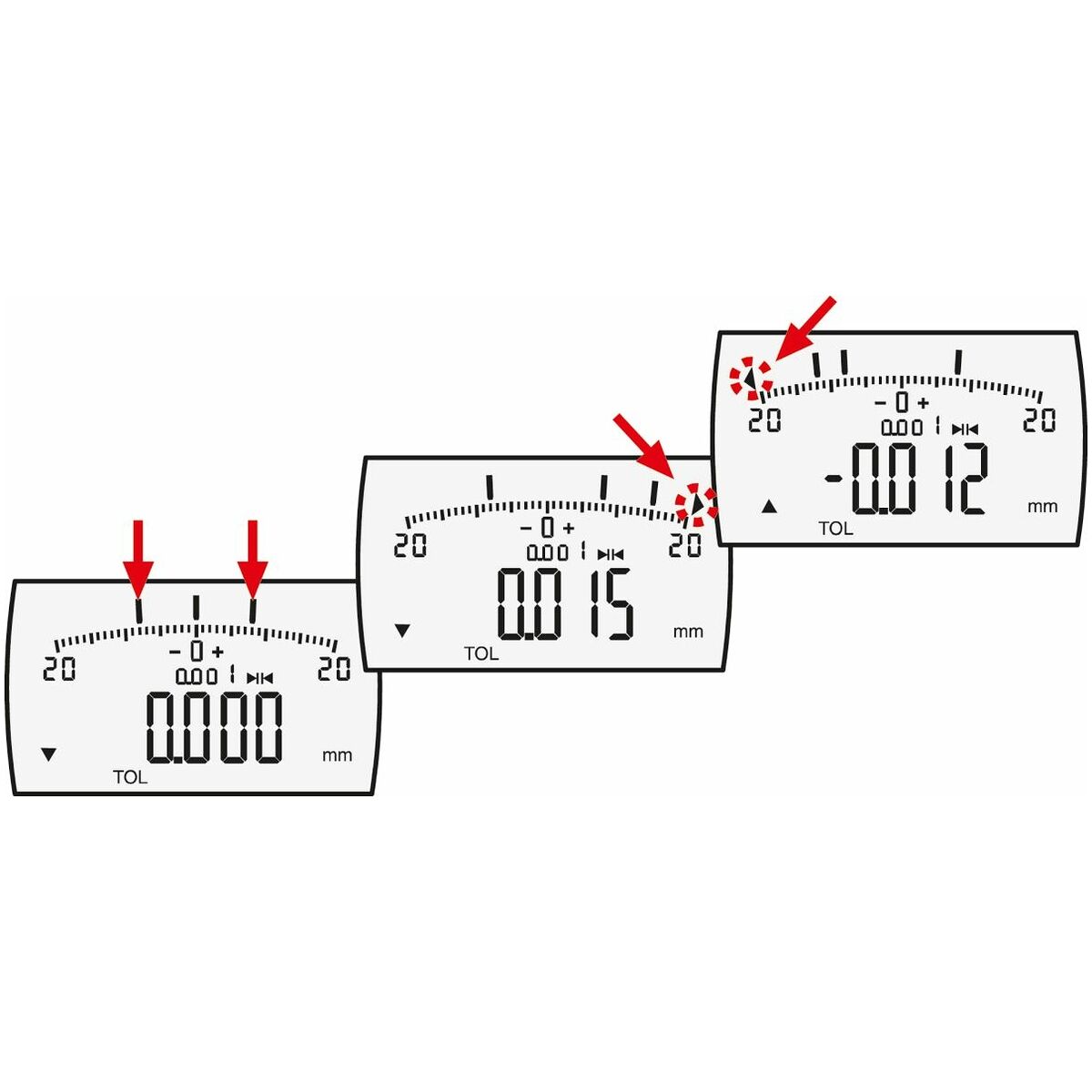 Digitalt mätur med mycket stor sifferdisplay (11 mm) och inbyggd toleransvisning. Extra analog barografdisplay med toleransgränser. REFERENCE mätsystem sparar och behåller det inställda nolläget, även efter att ha startats om. Lock-funktionen förhindrar mätfel genom oavsiktligt tryck på manöverknappar.