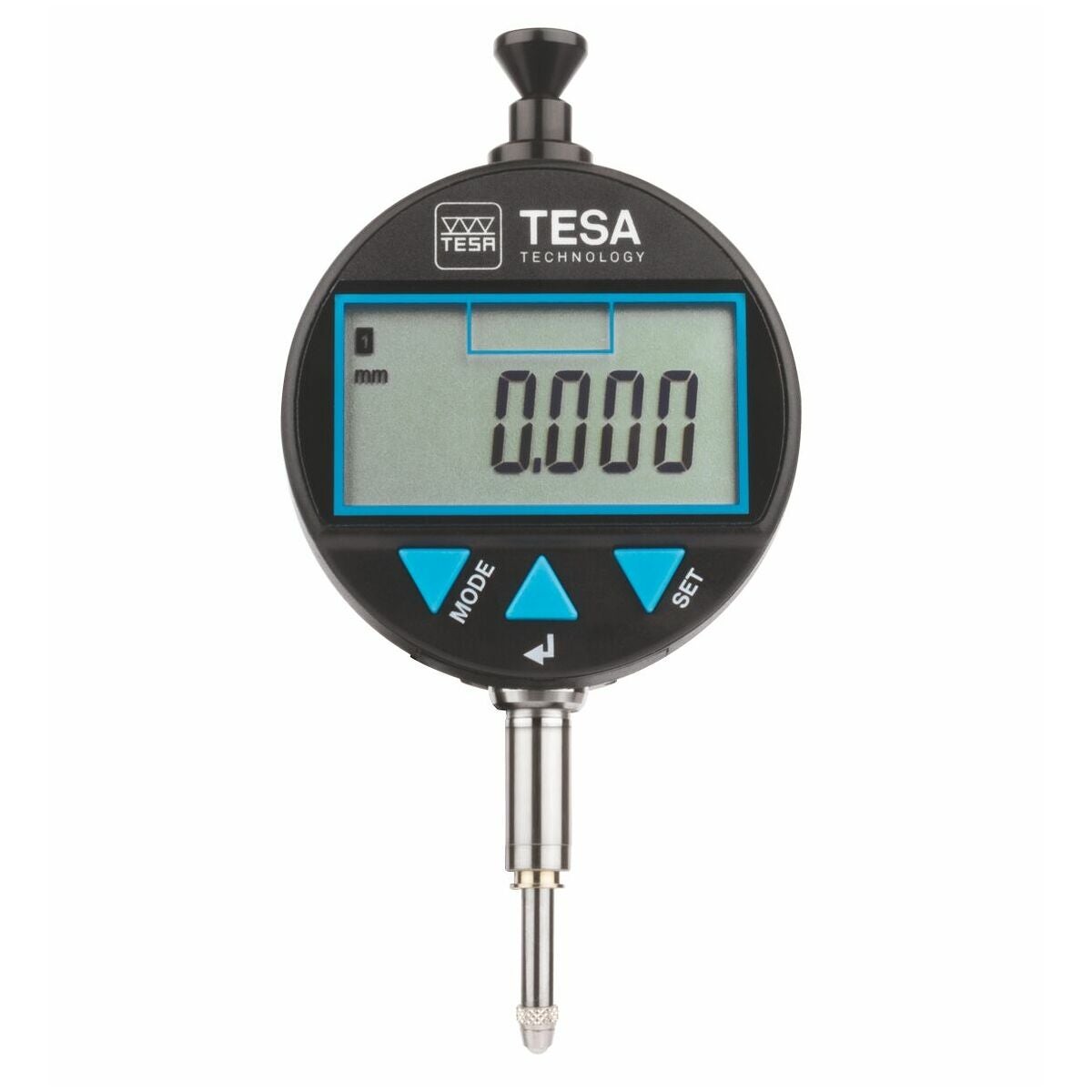 Digitalt mätur med skal- och sifferindikering (sifferhöjd 10 mm) samt mekaniska toleransmarkeringar. Displayen och knappsatsen kan vridas 270°.