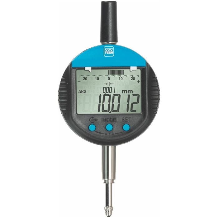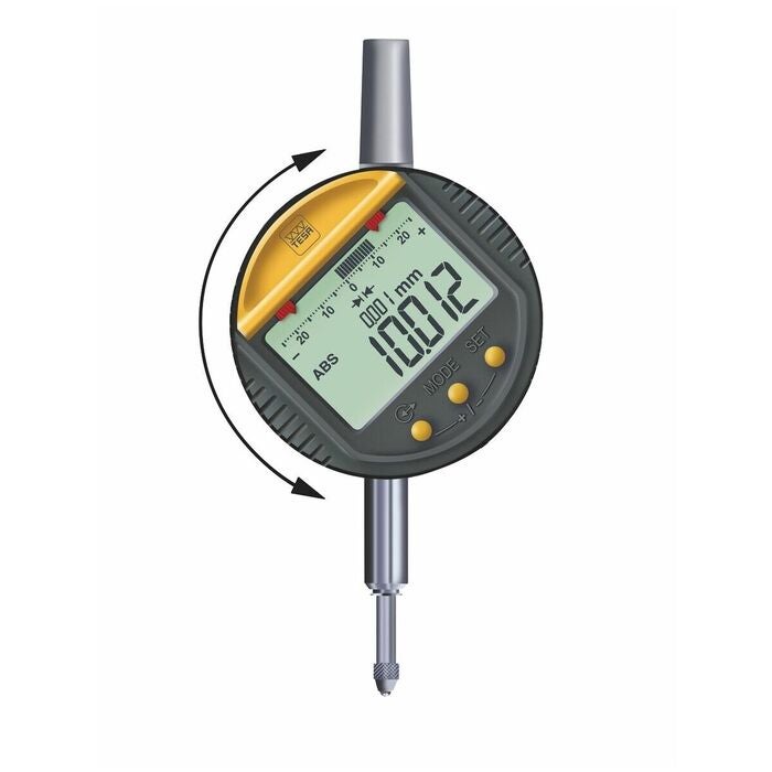 Digitalt mätur med skal- och sifferindikering (sifferhöjd 10 mm) samt mekaniska toleransmarkeringar. Display- och knappdelen kan vridas 270°.