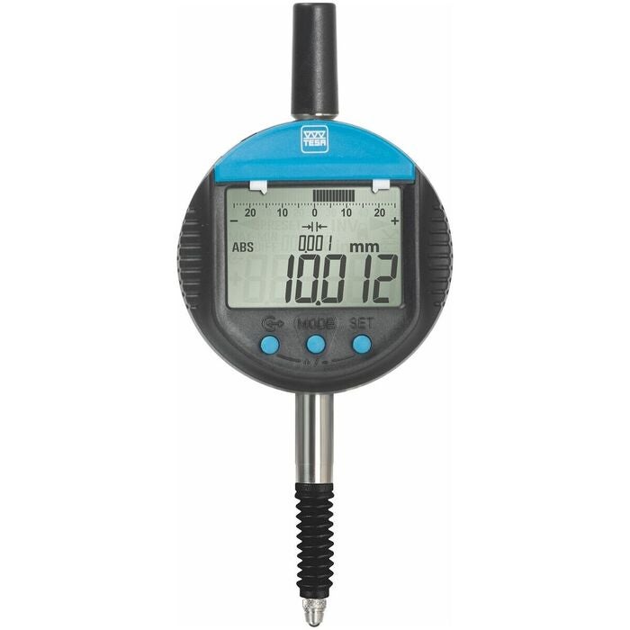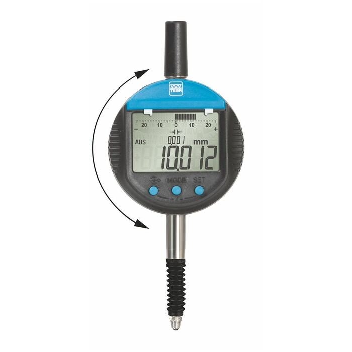 Digitalt mätur med skal- och sifferindikering (sifferhöjd 10 mm) samt mekaniska toleransmarkeringar. Display- och knappdelen kan vridas 270°.
