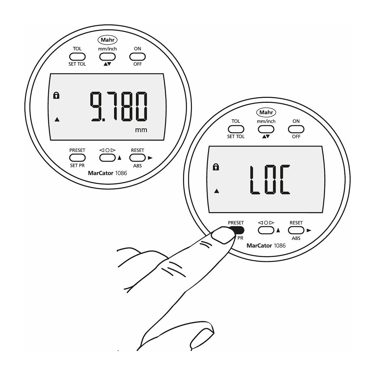 Digitalt mätur med mycket stor (12 mm) och kontrastrik LCD-display. Klar för mätning direkt vid påslagning tack vare Reference-systemet. REFERENCE mätsystem sparar och behåller det inställda nolläget, även efter att ha startats om. Lock-funktionen förhindrar mätfel genom oavsiktligt tryck på manöverknappar.