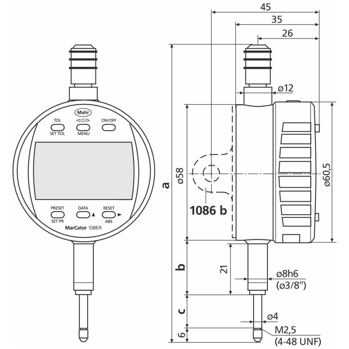 | Datautgång | RS232C-gränssnitt; USB-gränssnitt; Digimatic-gränssnitt; MAHR i-wi-radiosystem |