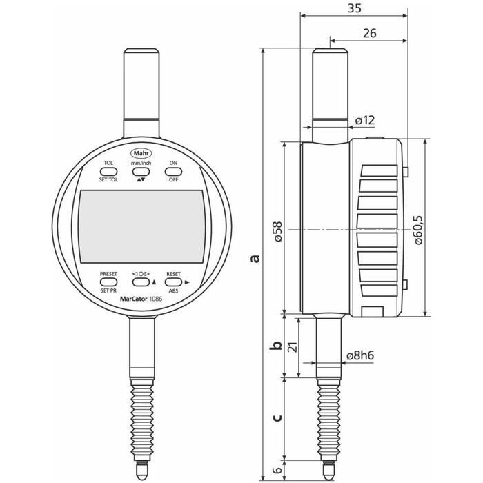 Digitalt mätur med mycket stor sifferdisplay (11 mm) och inbyggd toleransvisning (med eller utan mätvärdesdisplay). REFERENCE mätsystem sparar och behåller det inställda nolläget, även efter att ha startats om. Lock-funktionen förhindrar mätfel genom oavsiktligt tryck på manöverknappar.