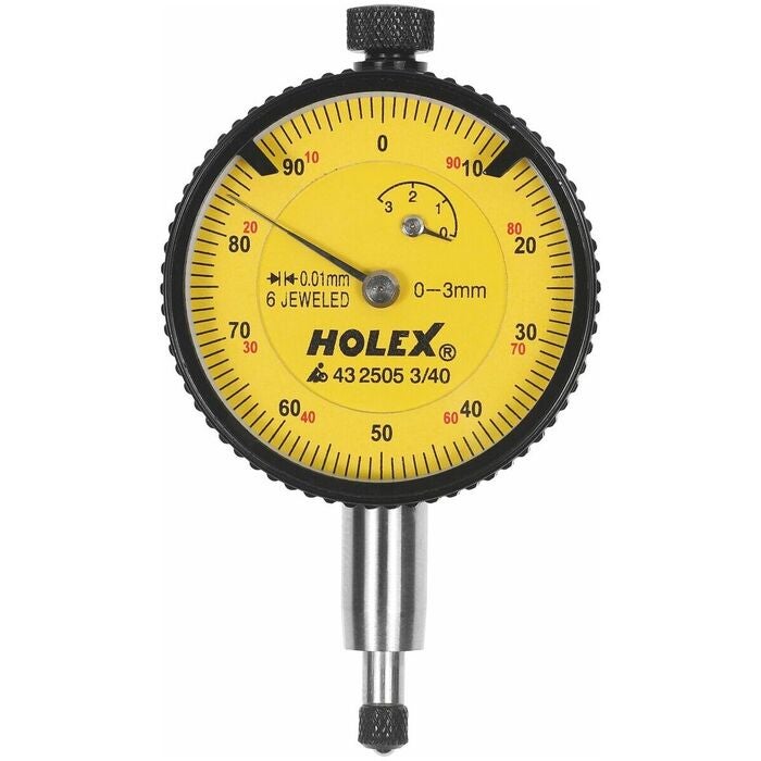 Små precisionsmätklockor med robust metallhölje, fastspänningsskaft ⌀ 8 mm h6, härdat och slipat. Urtavlans ytterring kan vridas för nollställning av visaren.