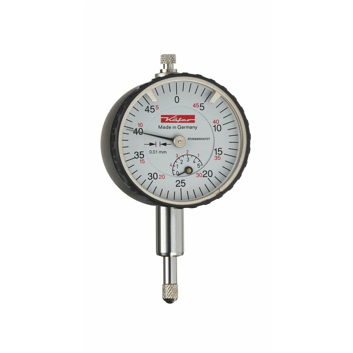 Små precisionsmätklockor med robust metallhölje, fastspänningsskaft ⌀ 8 mm h6, härdat och slipat. Urtavlans ytterring kan vridas för nollställning av visaren.