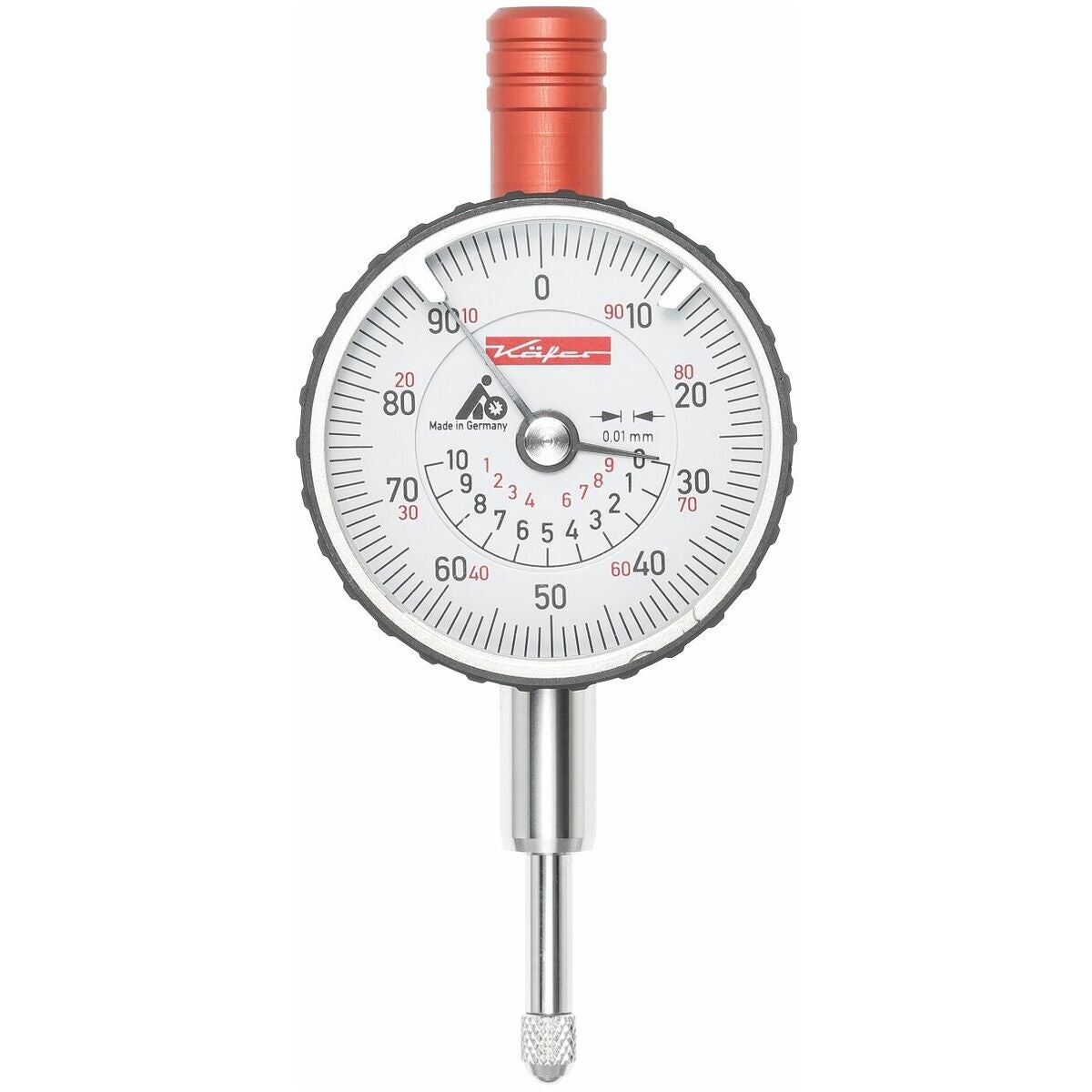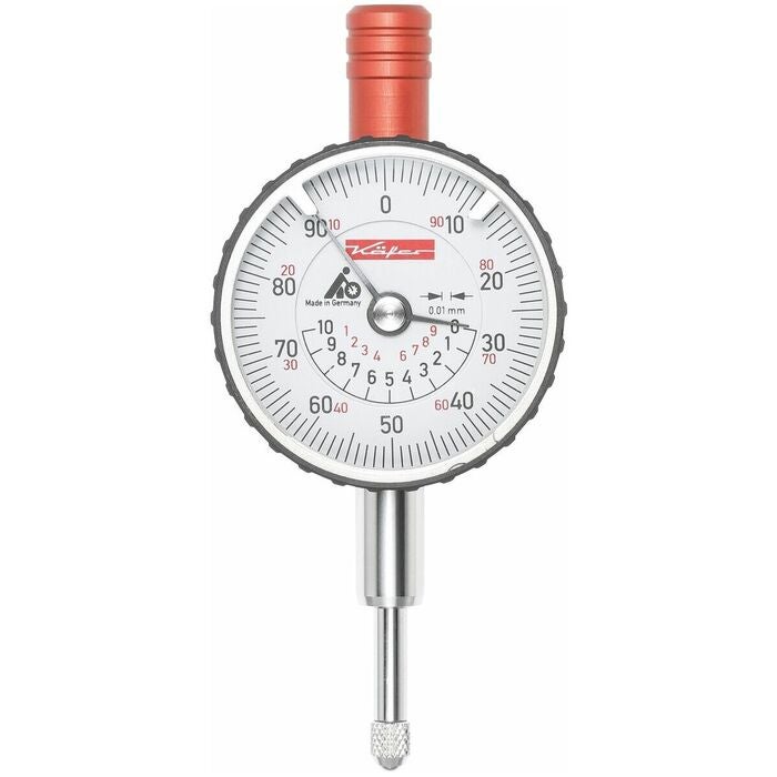 Små precisionsmätklockor med robust metallhölje, fastspänningsskaft ⌀ 8 mm h6, härdat och slipat. Urtavlans ytterring kan vridas för nollställning av visaren.