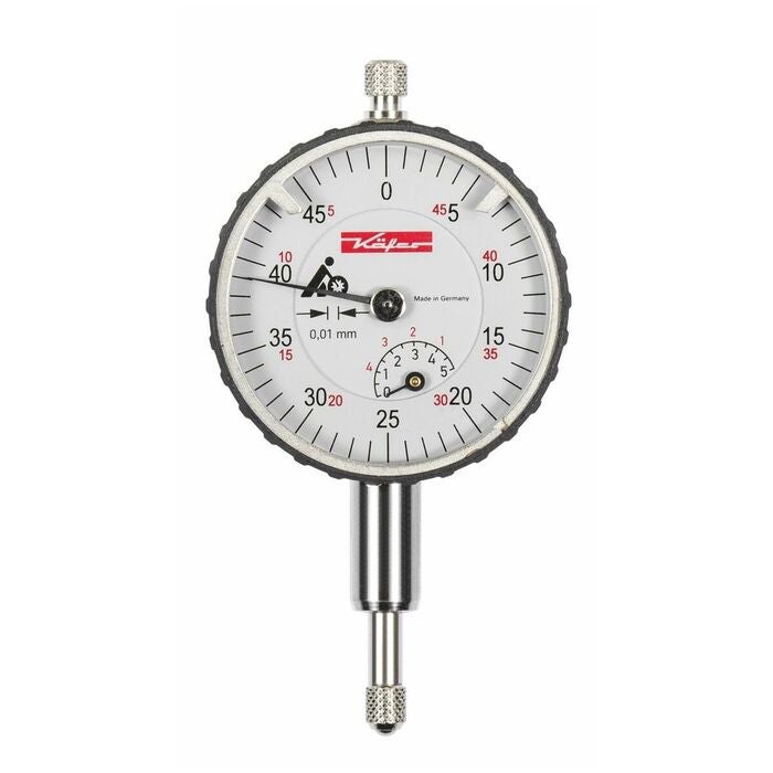 Små precisionsmätklockor med robust metallhölje, fastspänningsskaft ⌀ 8 mm h6, härdat och slipat. Urtavlans ytterring kan vridas för nollställning av visaren.
