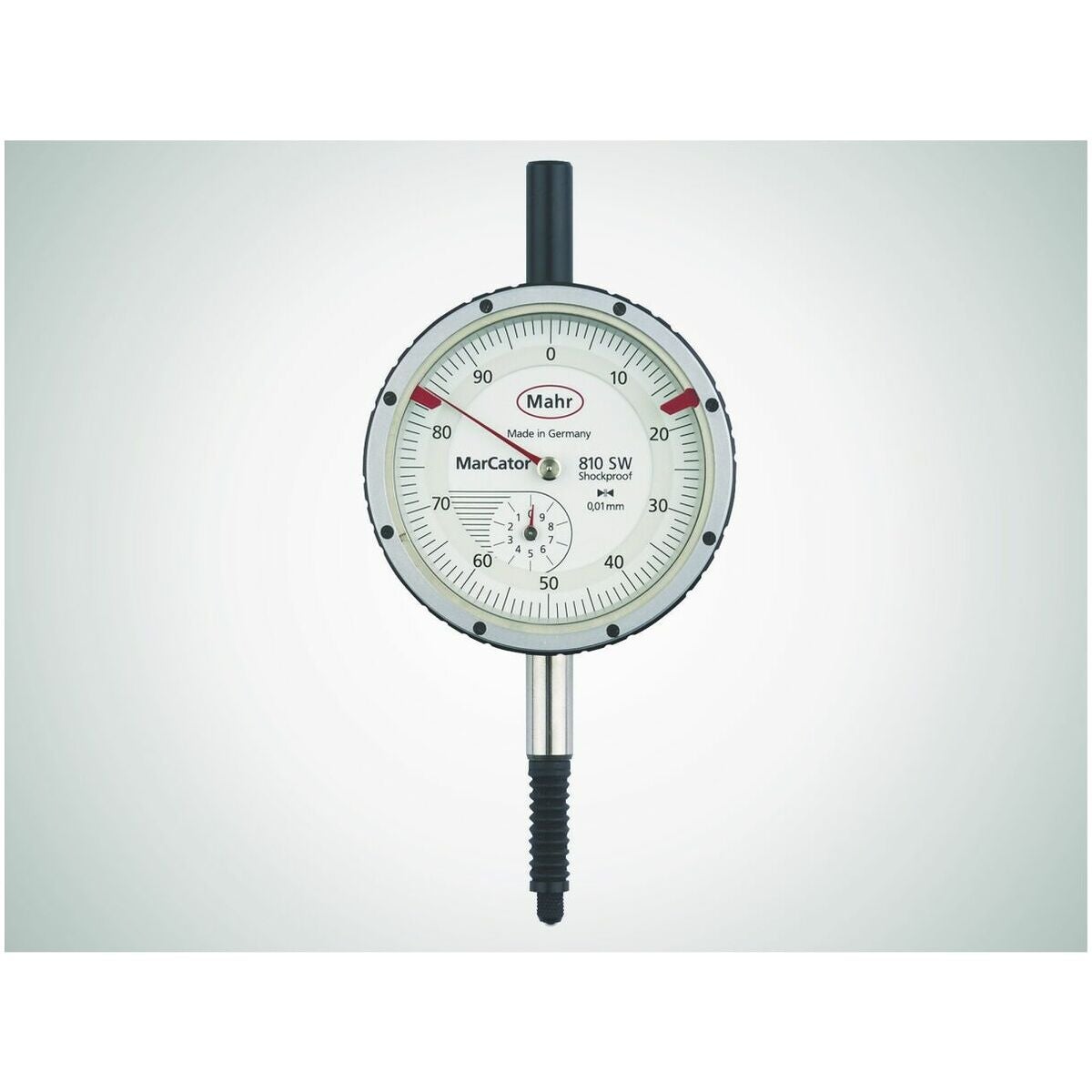 Precisionsmätklockor med stötskydd, skyddade mot stänkvatten, olja och smuts. Mätspets på skaft med gummibälg, tätad i övre änden med skyddshylsa. Baksidan är tätad, klockglas och ytterring är tätt fastskruvade. Fästtappens ⌀ 8 mm h6.