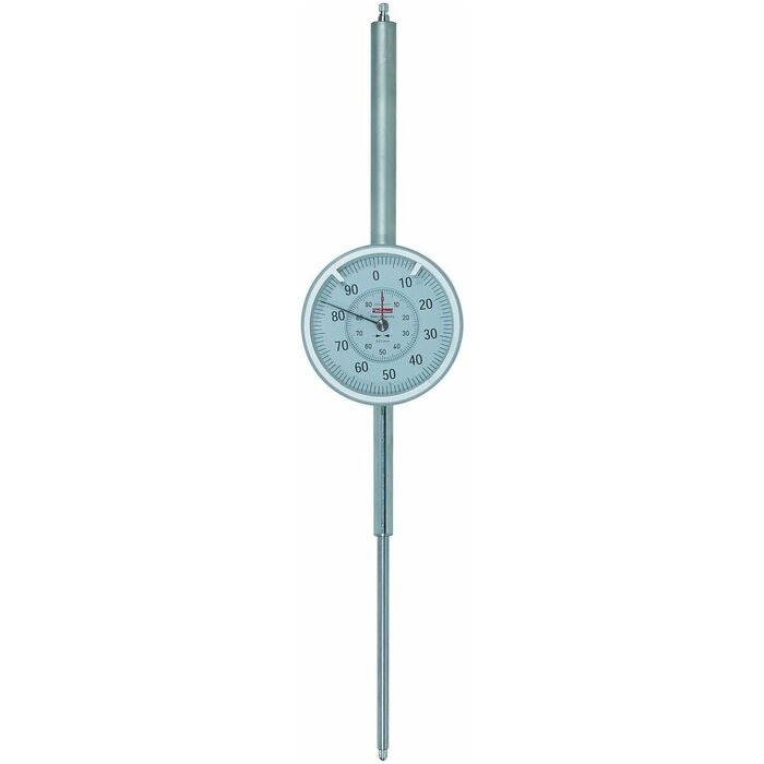 Centralvisare för 1/100 mm avläsning, liten visare för 1 mm avläsning.