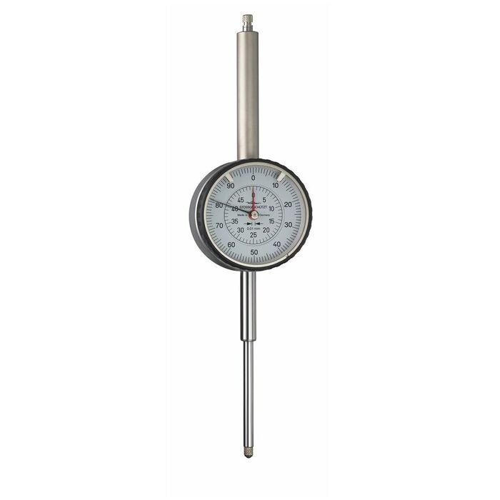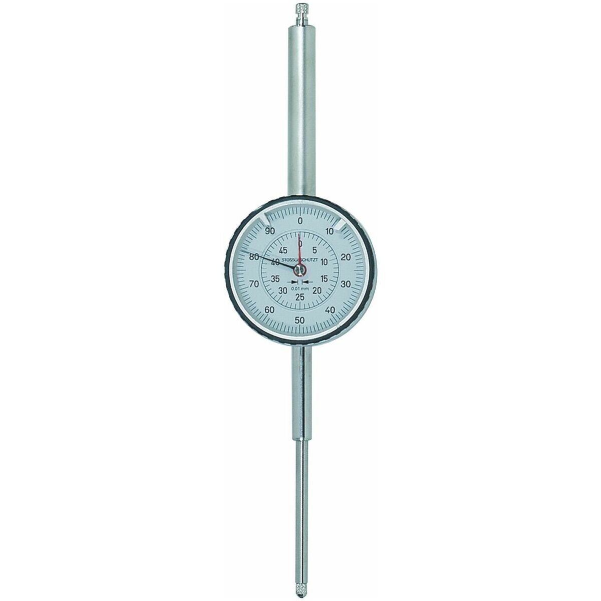 Centralvisare för 1/100 mm avläsning, liten visare för 1 mm avläsning.