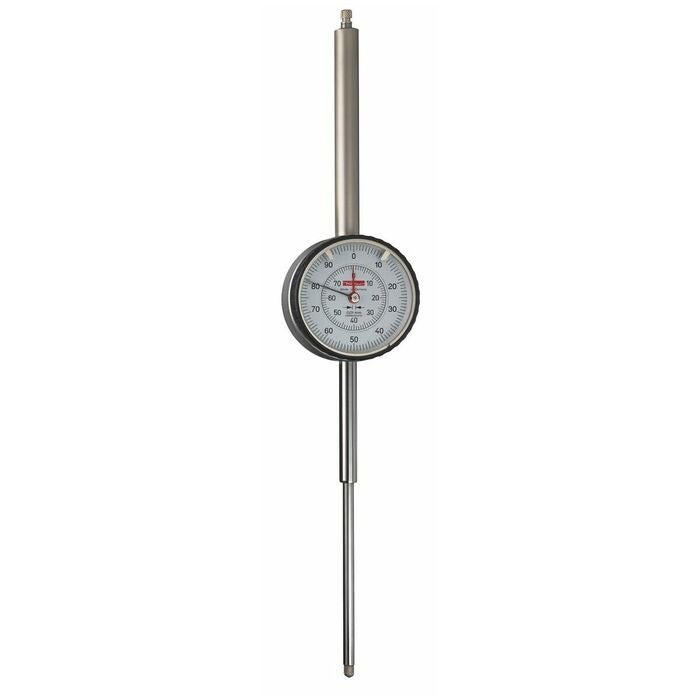 Centralvisare för 1/100 mm avläsning, liten visare för 1 mm avläsning.