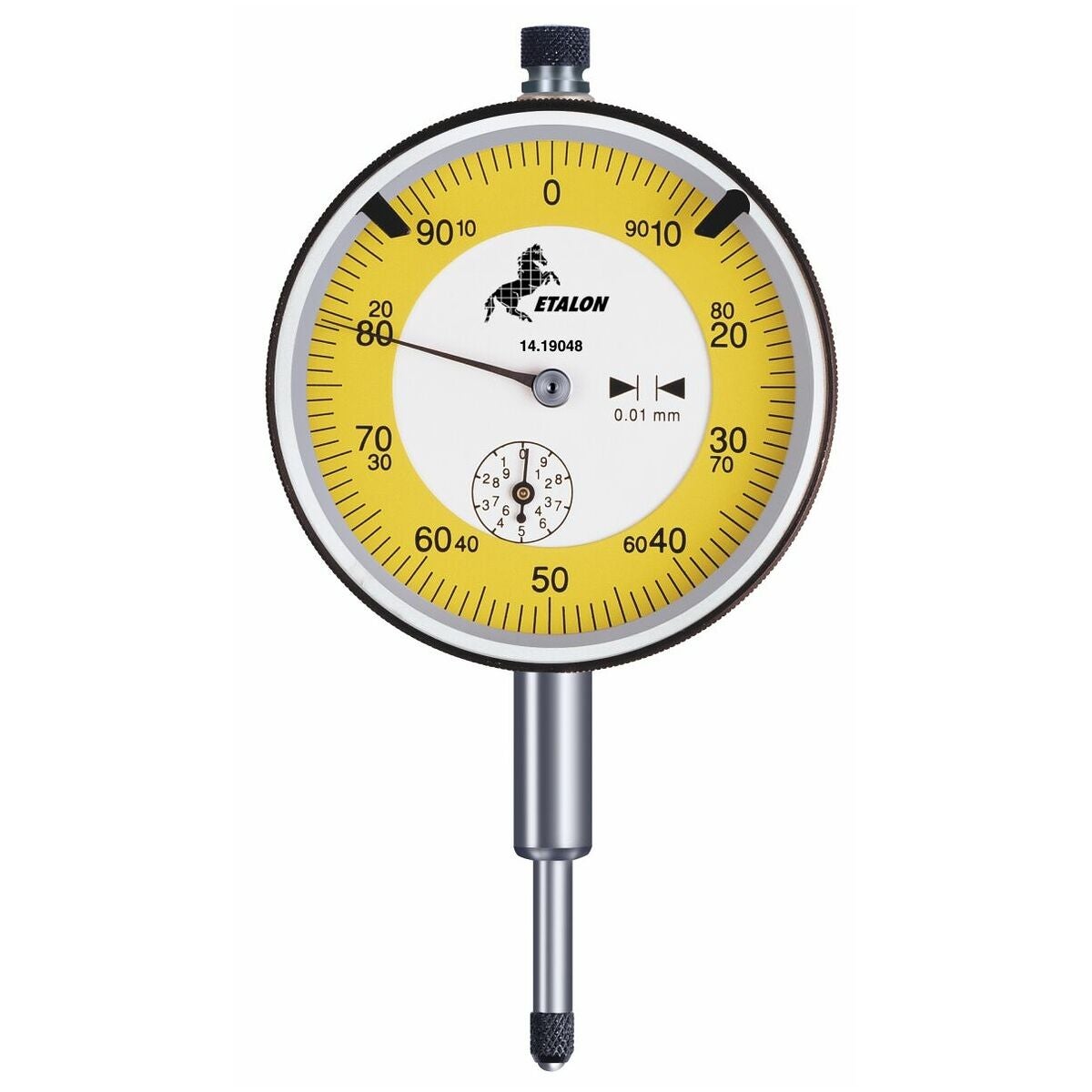 Stötskyddade precisionsmätur. Fästtapp ⌀ 8 mm h6, härdad och slipad. Urtavlans ytterring kan vridas för nollställning av visaren. Ytterring med 2 justerbara toleransmärken. Centralvisare för 1/100 mm avläsning, liten visare på underskalan för 1 mm avläsning.