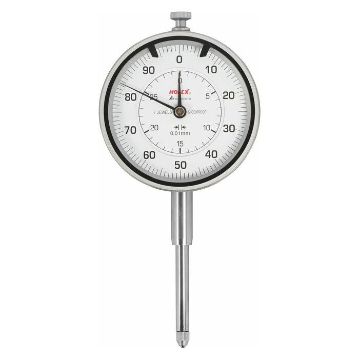 Centralvisare för 1/100 mm avläsning, liten visare för 1 mm avläsning.