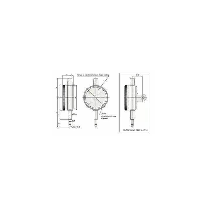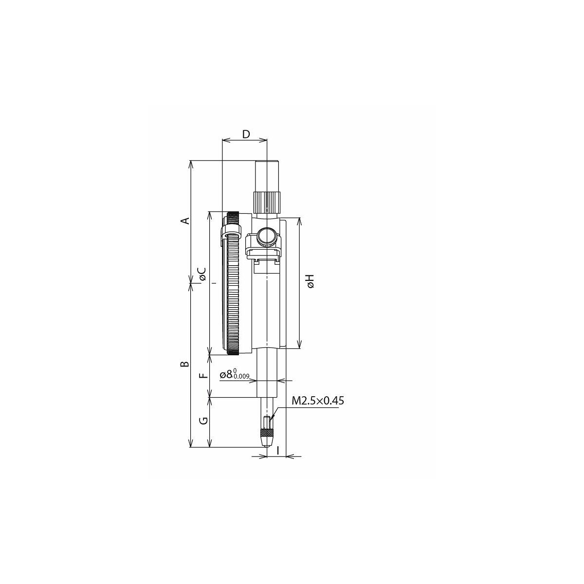 Dimensioner enligt DIN EN ISO 463, utgåva juni 2006. Stötskyddade precisionsmätur, säkerhetsmätur, stötskyddade med frigång. Extremt lätt och robust konstruktion med dammskydd. Fästtappens ⌀ 8 mm h6.