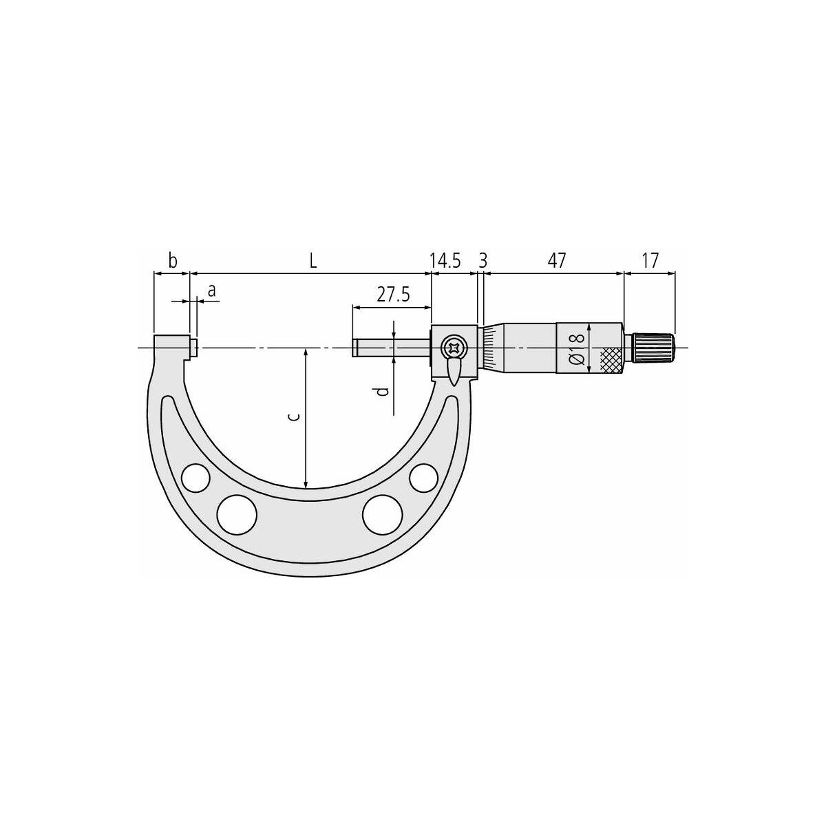 Finläppade hårdmetallbelagda mätytor.Härdad och slipad mätspindel. Låsning med låsvred. Med känselvred. Med precisionsgraverade svarta skalstreck och siffror.