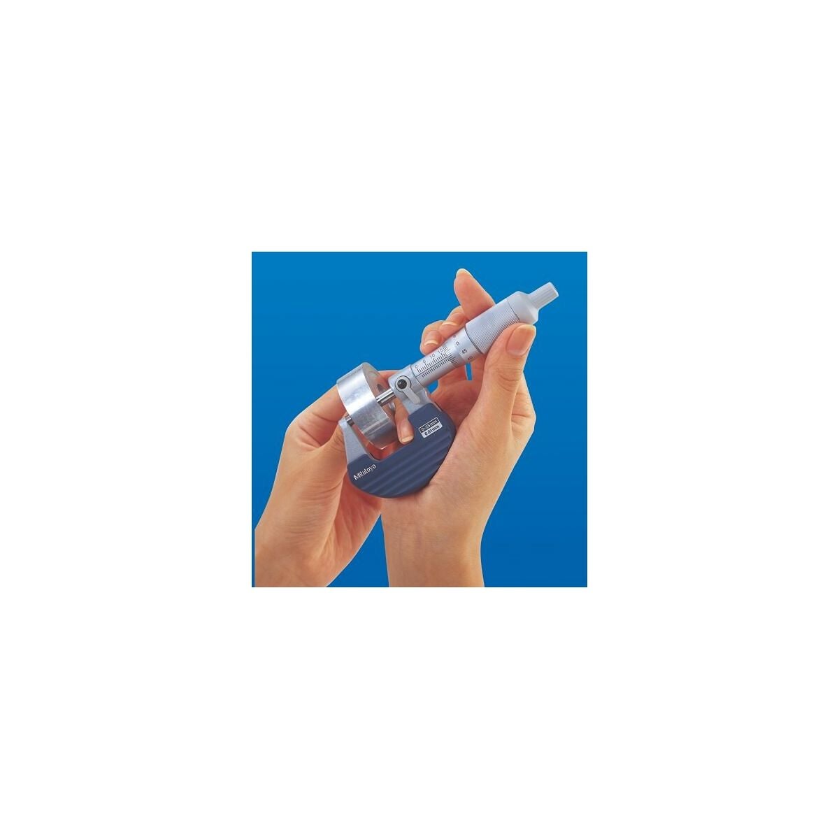Finläppade hårdmetallbelagda mätytor.Härdad och slipad mätspindel. Låsning med låsvred. Med känselvred och isoleringsskydd. Bländfri, förkromad mättrumma. Med tydligt graverade svarta skalstreck och siffror.