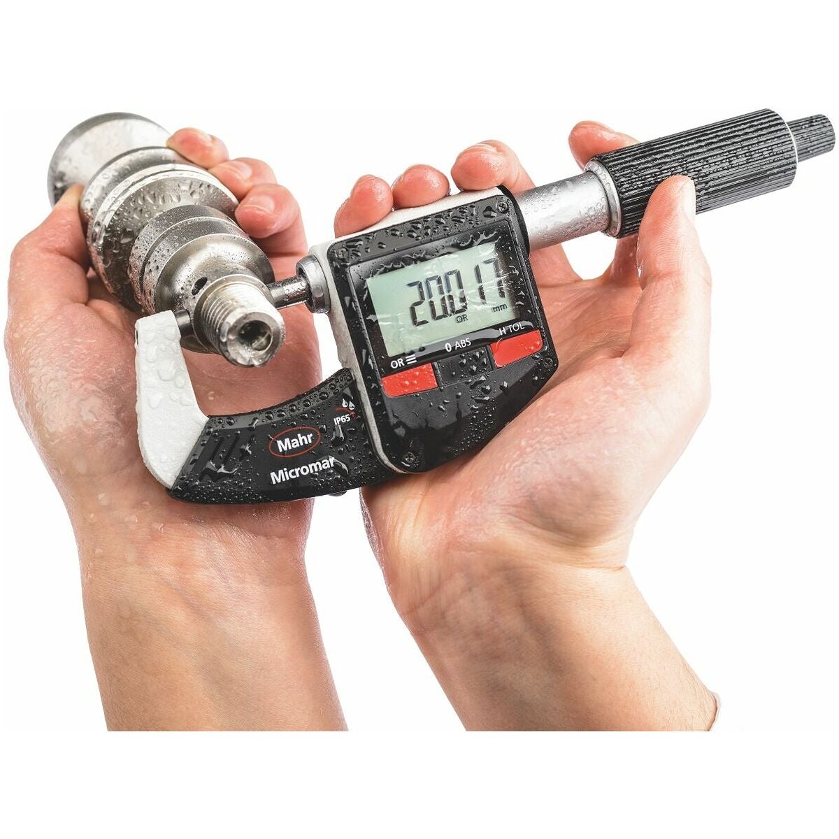 Innovativ bygelmikrometer med 10 mm höga siffror på display med hög kontrast. Praktisk HOLD-funktion för låsning av mätvärdet för säker avläsning. Härdad och slipad mätspindel. Mätytor av hårdmetall. Framflyttad spärrnyckel med snabbfunktion. Lackerad stålbygel med värmeisolering. Omkoppling mellan relativ- och absolutmätning. Nollställning i valfritt läge. REFERENCE mätsystem sparar och behåller det inställda nolläget, även efter att ha startats om. Lock-funktionen förhindrar mätfel genom oavsiktligt tryck på manöverknappar.