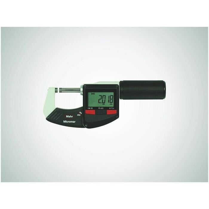Innovativ bygelmikrometer med 10 mm höga siffror på display med hög kontrast. Praktisk HOLD-funktion för låsning av mätvärdet för säker avläsning. Härdad och slipad mätspindel. Mätytor av hårdmetall. Framflyttad spärrnyckel med snabbfunktion. Lackerad stålbygel med värmeisolering. Omkoppling mellan relativ- och absolutmätning. Nollställning i valfritt läge. Tack vare en bekväm toleransindikering med extra varningsgränser ser operatören om och hur arbetsstycket ligger inom toleransgränserna.