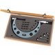 Härdad och slipad mätspindel och mätyta; låsning med låsanordning. Med känselvred. Bländfritt förkromad mättrumma med 50-gradering och tydligt graverade, svart ifyllda delstreck och siffror.