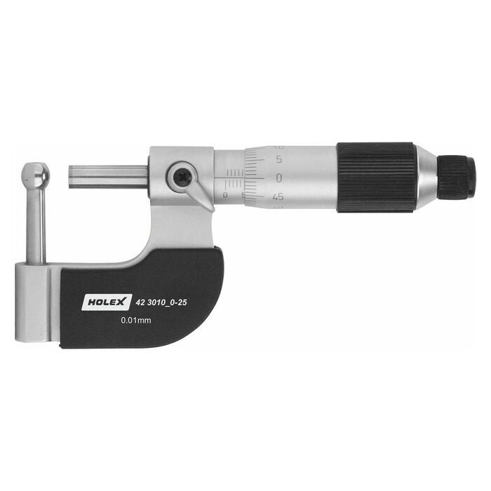 Med kulformigt städ för mätning av väggtjocklekar på rör och andra böjda delar. Mätspindel med mätytor av hårdmetall, städ-⌀ 8 mm, härdat. Med isolerhandtag, låsarm och framflyttat känselvred.