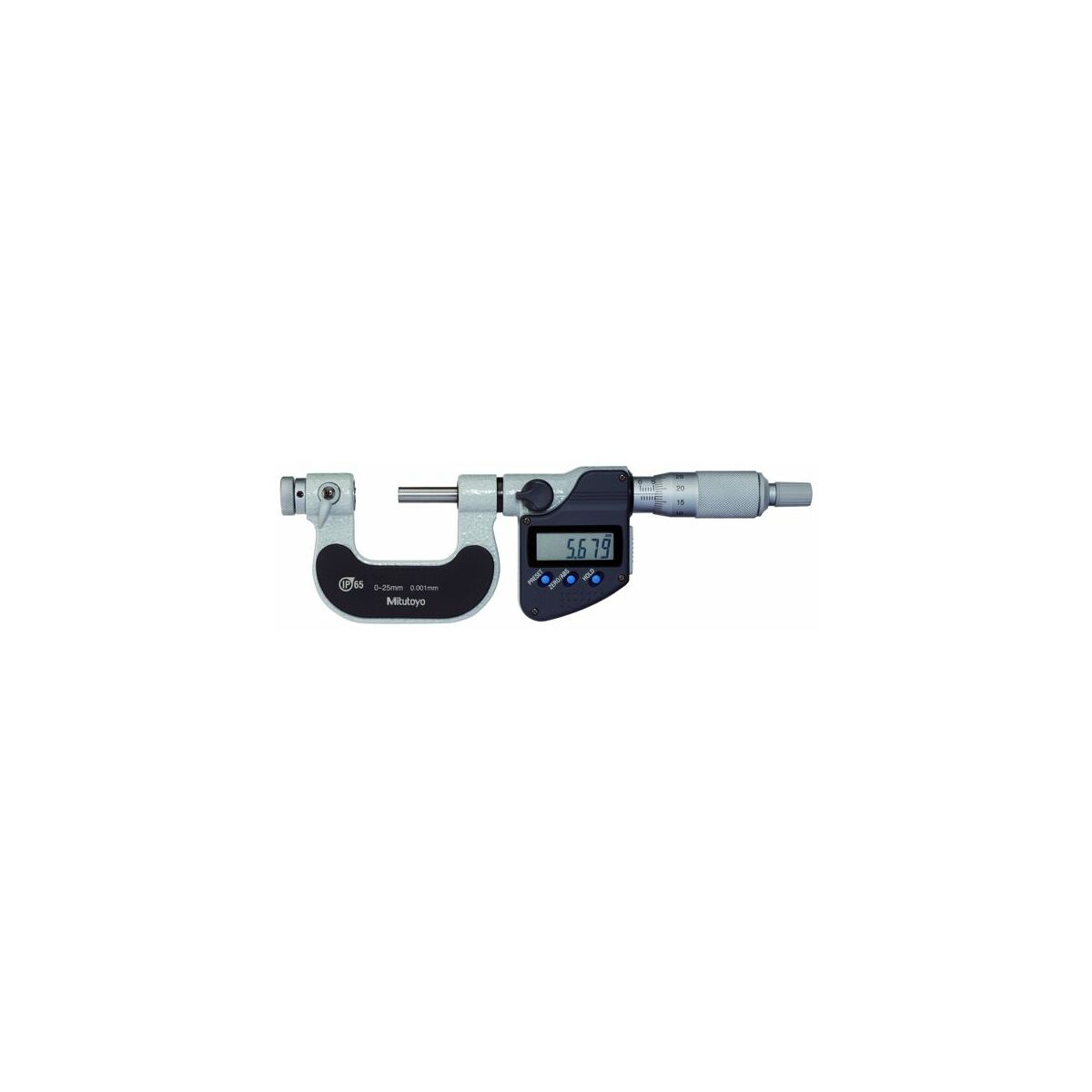 Tydlig (7,5 mm hög) digital mätvärdesdisplay möjliggör felfri och snabb avläsning. Tilläggsavläsning med nonie. Sintrade och finläppade mätytor av hårdmetall, härdad och slipad mätspindel. Låsning via klämskruv. Mättryck vid användning av känselspärren 5 − 10 N.