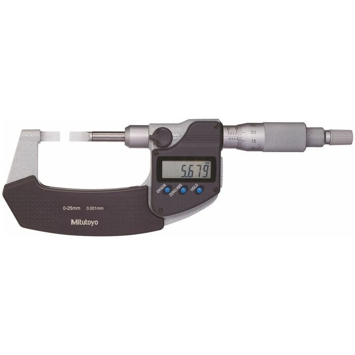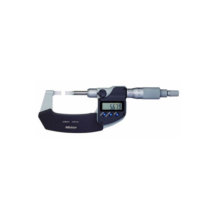 Tydlig (7,5 mm hög) digital mätvärdesdisplay möjliggör felfri och snabb avläsning. Tilläggsavläsning med nonie. Sintrade och finläppade mätytor av hårdmetall, härdad och slipad mätspindel. Låsning via klämskruv. Mättryck vid användning av känselspärren 5 − 10 N.