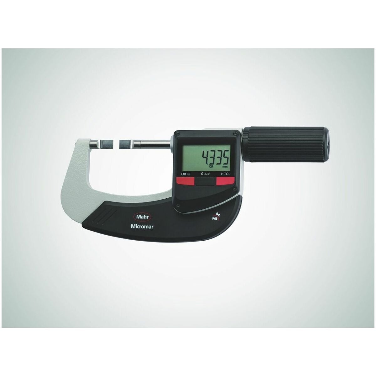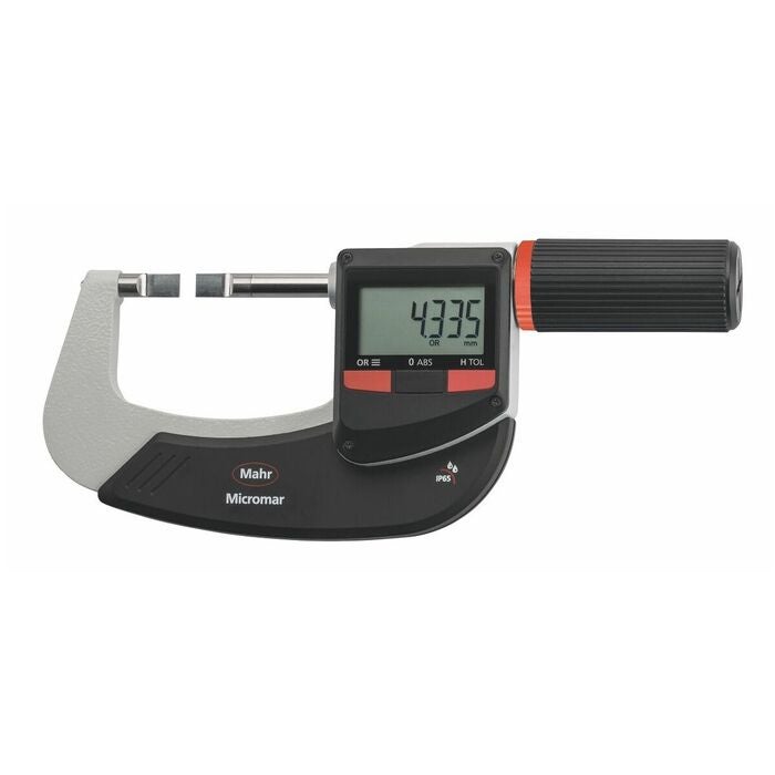 Innovativ bygelmikrometer med 10 mm höga siffror på display med hög kontrast. Praktisk HOLD-funktion för låsning av mätvärdet för säker avläsning. Lackerad stålbygel med värmeisolering. Omkoppling mellan relativ- och absolutmätning. Nollställning i valfritt läge. Tack vare en smidig toleransindikering med extra varningsgränser ser operatören om och hur arbetsstycket ligger inom toleransgränserna.