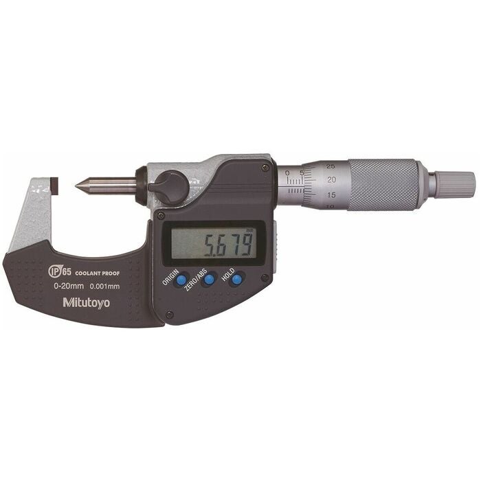 Tydlig (7,5 mm hög) digital mätvärdesdisplay möjliggör felfri och snabb avläsning. Tilläggsavläsning med nonie. Sintrade och finläppade mätytor av hårdmetall, härdad och slipad mätspindel. Låsning via klämskruv. Mättryck vid användning av känselspärren 5 − 10 N.