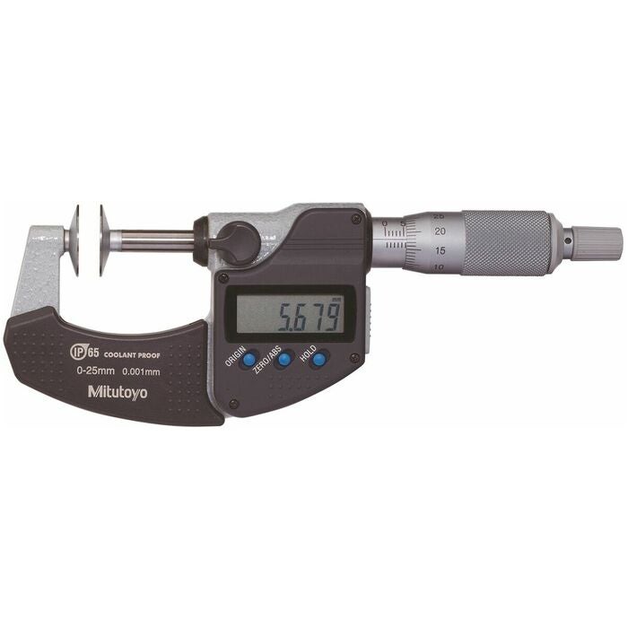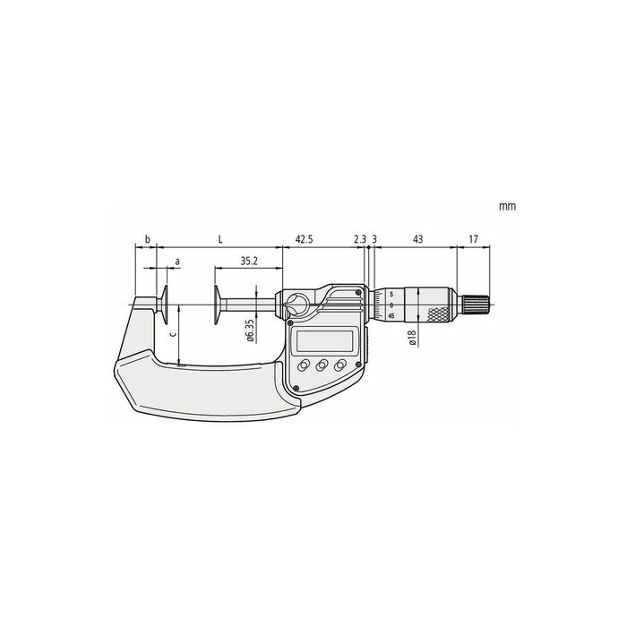 Tydlig (7,5 mm hög) digital mätvärdesdisplay möjliggör felfri och snabb avläsning. Tilläggsavläsning med nonie. Sintrade och finläppade mätytor av hårdmetall, härdad och slipad mätspindel. Låsning via klämskruv. Mättryck vid användning av känselspärren 5 − 10 N.