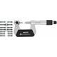 Universalbygelmikrometer med ej roterande spindel. Läppade mätytor. Hållar-⌀ 5×15 mm. Smidd och lackerad stålbygel. Insatserna kan snabbt bytas ut. Nollställning sker via klämbara glidhylsor.